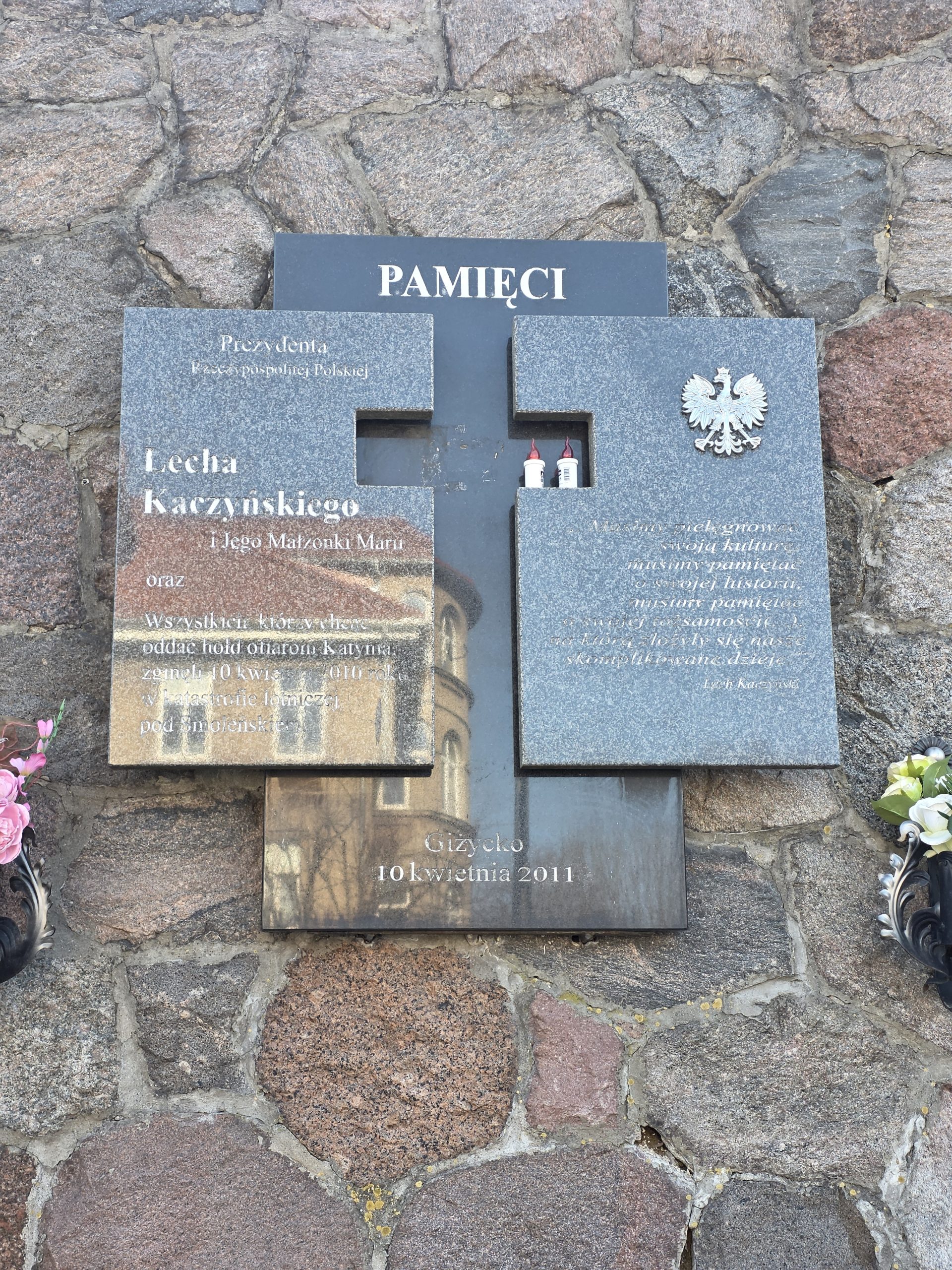 W dniu dzisiejszym, 10 kwietnia br. o godzinie 8.41 delegacje samorządów Miasta Giżycka i Powiatu Giżyckiego złożyły wiązanki kwiatów pod tablicą upamiętniającą katastrofę pod Smoleńskiem przy Sanktuarium Św. Brunona w Giżycku.