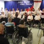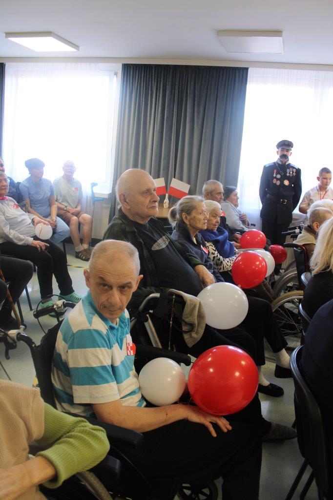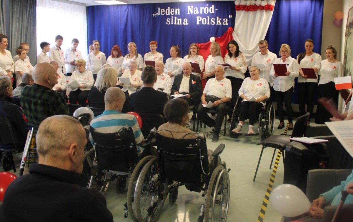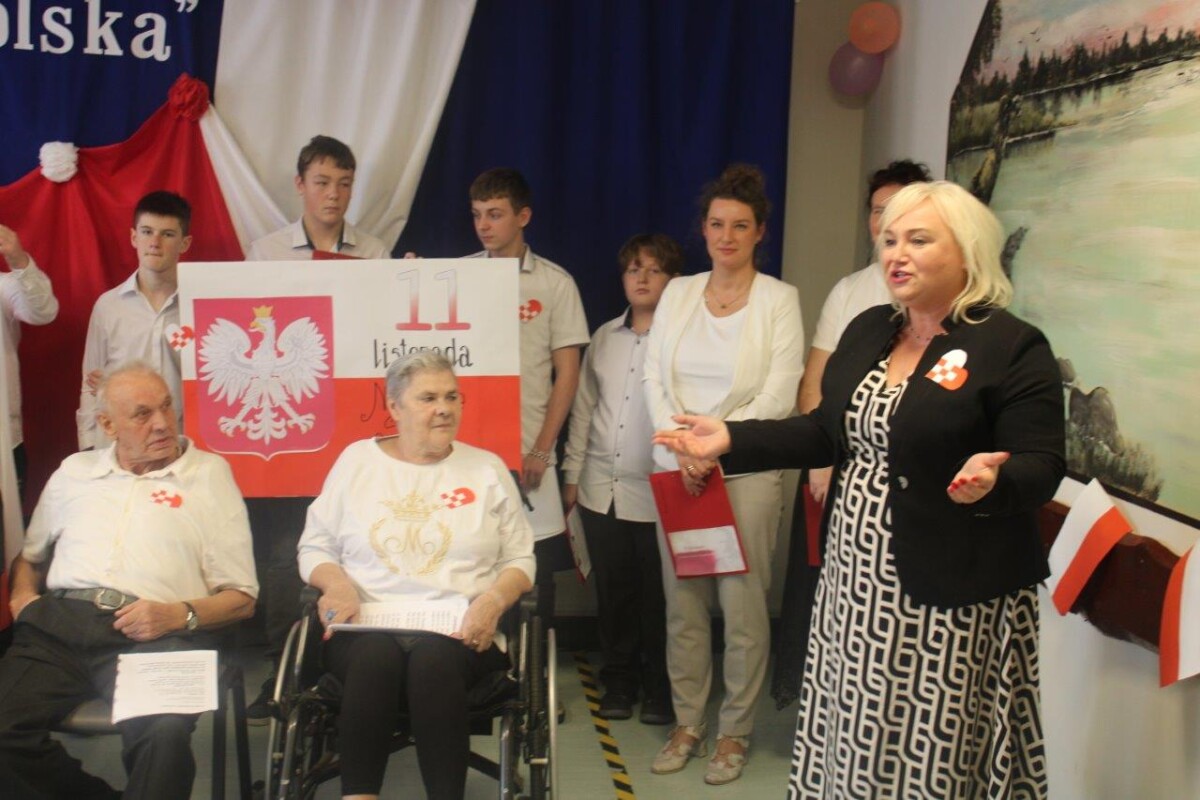 Uroczystość rozpoczęła Dyrektor DPS Giżycko wprowadzając wszystkich w podniosły, pełen patriotyzmu nastrój. Pracownicy DPS i mieszkańcy śpiewali wzruszające pieśni patriotyczne, które rozbrzmiały radością i dumą z odzyskanej wolności.