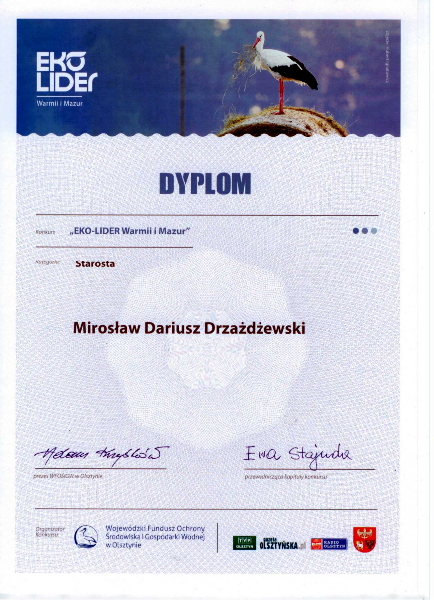 Starosta Giżycki wśród 9 Eko-Liderów z Warmii i Mazur