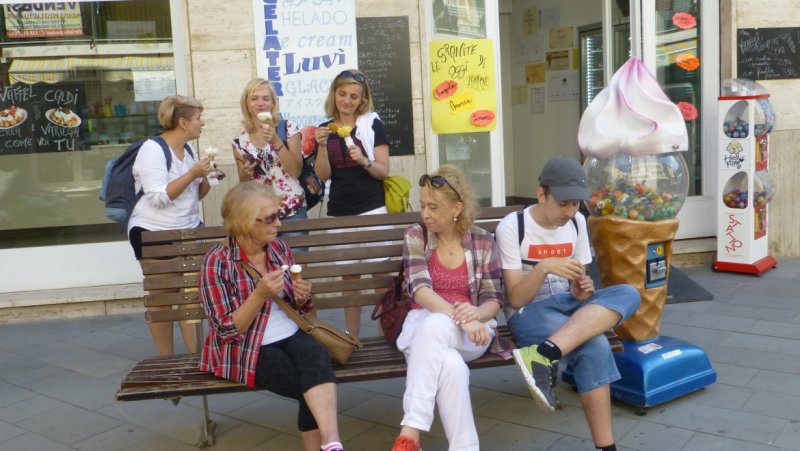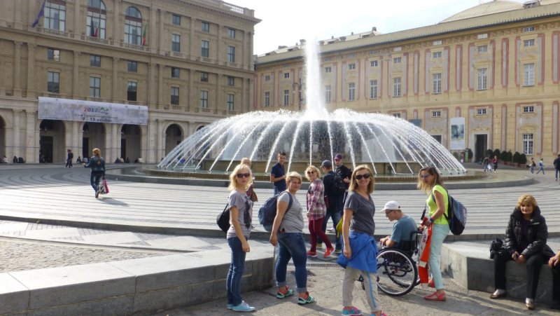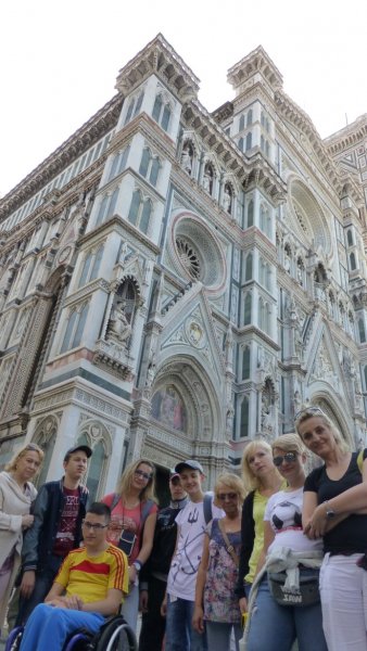 „Kolejna wyprawa TRAPERSÓW wiodła ścieżkami włoskiej Toskanii i Ligurii. I choć od powrotu minęło kilka dni wciąż trudno uwierzyć, że tam byliśmy… Wszystko zaczęło się od marzeń w listopadzie ubiegłego roku. Kluczowe decyzje zapadły w marcu, gdy nadszedł czas zakupu biletów lotniczych, które pół roku czekały, aż zostaną wykorzystane. Samolot nikogo już nie przerażał, wszak to kolejny lot TRAPERSÓW. Każdy dzień pobytu na włoskiej ziemi jawi się jak piękny sen, który zaczął się 30 września na giżyckim dworcu PKP. Kolejnym jego etapem było lotnisko w Modlinie, z którego lecieliśmy do Pizy. Choć dotarliśmy tam nocą zaskoczyła nas wysoka temperatura. Kolejny dzień minął nam na zwiedzaniu tego pięknego miasta. Krzywa Wieża wygląda jakby miała się za chwilę przewrócić. Każdy zakątek tego miasta kryje pozostałości piękna Rzymskiego Imperium. Tak jak i inne miejsca, które odwiedziliśmy. Katedra we Florencji wygląda jakby ktoś ją narysował i przykleił pomiędzy kolorowymi kamienicami. Dawid, wyrzeźbiony przez Michała Anioła, przyciąga wielu zwiedzających. W tym mieście atrakcji nie brakuje. Z Toskanii, której piękno przyrody podziwialiśmy z okien pociągu, pojechaliśmy do Ligurii. Wybrzeże Liguryjskie zaskakuje zróżnicowaniem krajobrazu, roślinnością i kolorami. W Moneglii zachwyciły nas nie tylko widoki, ale przede wszystkim ludzka życzliwość. Ta nadmorska miejscowość kryje w sobie również wiele urokliwych zakątków. Każdy podróżnik znajdzie tam coś dla siebie. Leniuszki mogą leżeć na plaży, spacerować uliczkami miasteczka lub przysiąść w jednej z licznych restauracji, pizzerii lub kawiarni. Warto też spróbować prawdziwych lodów włoskich. Amatorzy kąpieli morskich mogą zanurzyć się w słonych wodach Morza Liguryjskiego lub w basenie. Byliśmy również w mieście Krzysztofa Kolumba (w Genui) oraz w Santa Margherita Ligure. Do Portofino płynęliśmy statkiem. Ta jedna z najbardziej ekskluzywnych małych miejscowości wypoczynkowych we Włoszech była dopełnieniem naszej wyprawy. W ósmym dniu naszej przygody znów wsiedliśmy do samolotu, by późną nocą wrócić do swoich domów.”