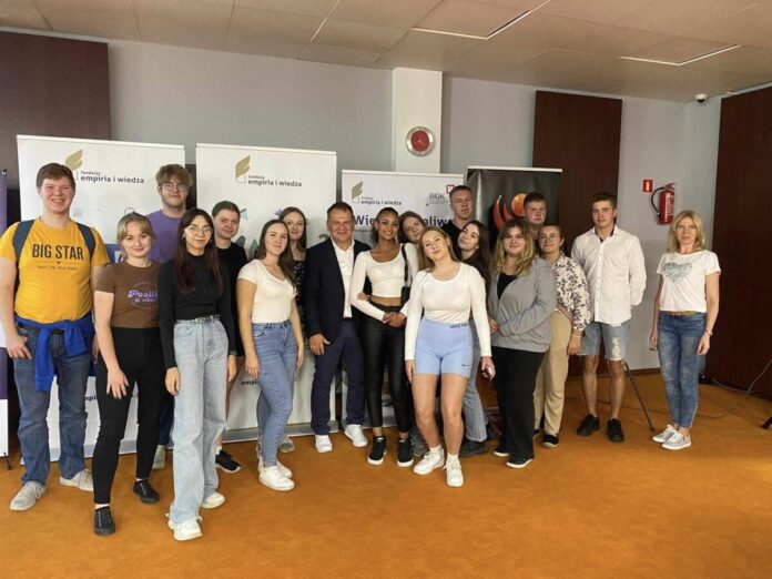 We wrześniu w sześciu województwach ruszyła trzecia edycja projektu MATura+, którego celem jest wyrównywanie szans edukacyjnych z matematyki uczniów klas maturalnych w formie całorocznego, darmowego kursu on-line przygotowującego do matury z matematyki. Konferencja inaugurująca projekt w województwie warmińsko-mazurskim odbyła się 22 września br. w Giżycku. Maturzyści szczelnie wypełnili salę, a wśród nich było 16 uczniów ZSZ Giżycko pod opieką nauczycielki matematyki – pani Anety Kępińskiej.