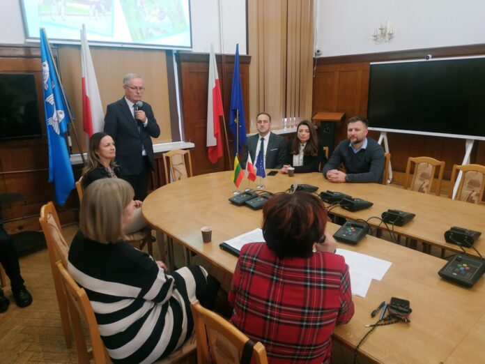 14 listopada br. mieliśmy przyjemność gościć w Starostwie Powiatowym w Giżycku delegację z naszego partnerskiego samorządu – Miasta Alytus (Litwa). Miasto Alytus reprezentowali: Nerijus Cesiulis – Mer Miasta Alytus, Lina Gaidžiūnaitė – Wicemer, Gintaras Rakaitis – Dyrektor Administracyjny, a także szefowie departamentów i dyrektorzy biur pracujący na rzecz samorządu miasta Alytus. Gości przywitali Mirosław Dariusz Drzażdżewski – Starosta Giżycki, Mateusz Sieroński – Wicestarosta Giżycki, Monika Łępicka-Gij – Przewodnicząca Rady Powiatu w Giżycku, Małgorzata Czopińska – Dyrektor Powiatowego Zespołu Obsługi Szkół i Placówek Oświatowych w Giżycku oraz Ryszard Należyty – Zastępca Dyrektora PZOSiPO.